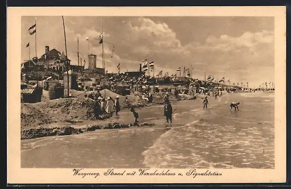 AK Wangeroog, Strand mit Wannbadehaus und Signalstation