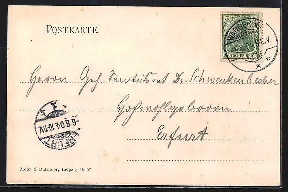 alte Ansichtskarte, gelaufen 1904, Eckknicke li. oben, vorderseitig Klebe- und Papierreste, guter Zustand