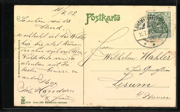 alte Ansichtskarte, gelaufen 1909, guter Zustand
