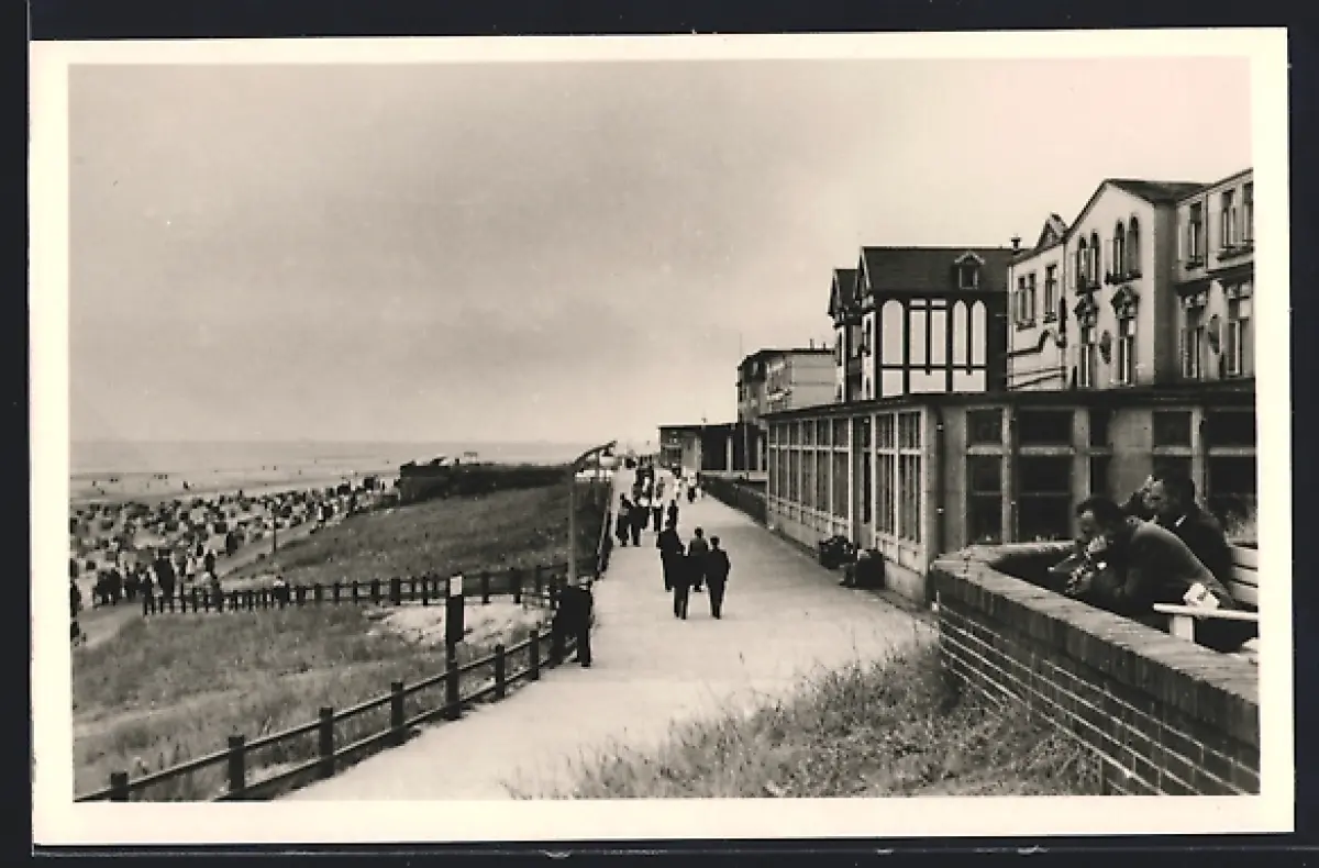 AK Wangerooge, Promenade mit Strand und Strandkörben