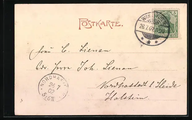 alte Ansichtskarte, gelaufen 1902, guter Zustand