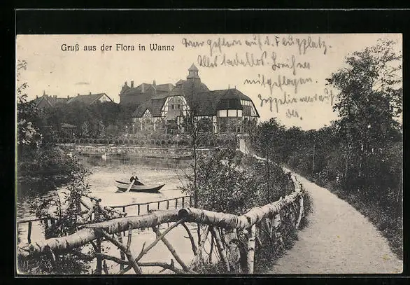 AK Wanne, Gasthaus Flora mit Bootspartie