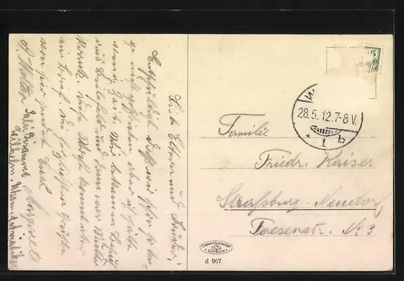 gelaufen 1912, Briefmarke entfernt, rückseitig Oberflächenschaden, guter Zustand