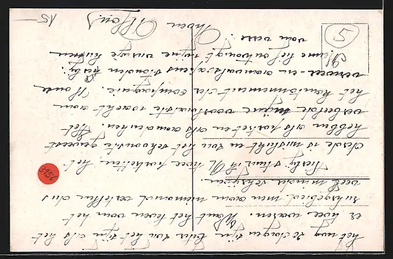 Personenbezogene Daten auf der Rückseite der Karte wurden durch blauen Textmarker unkenntlich gemacht. Die blauen Stellen sind auf die Vorderseite durchgeweicht und wirken sich negativ auf das Postkartenfoto aus