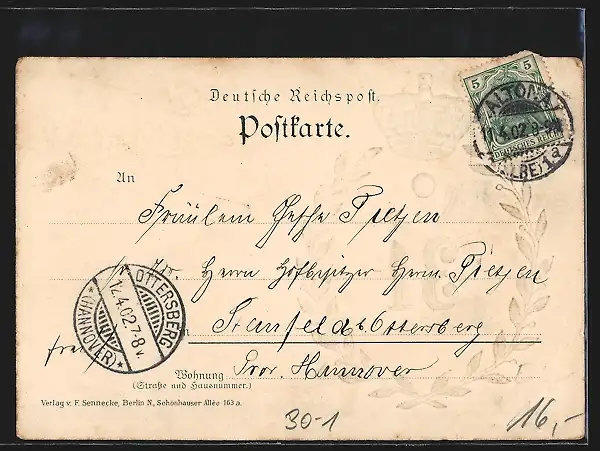 alte Ansichtskarte, gelaufen 1902, guter Zustand