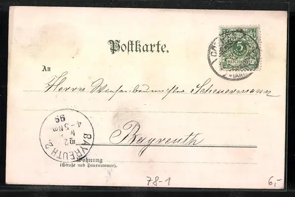 alte Ansichtskarte, gelaufen 1899, Stempelspur, guter Zustand