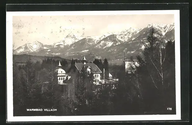 AK Warmbad Villach, Teilansicht mit Bergpartie