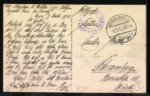 alte Ansichtskarte, gelaufen als Feldpost 1915, guter Zustand