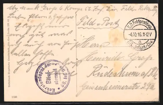 alte Ansichtskarte, gelaufen 1916, Stempelspur, guter Zustand