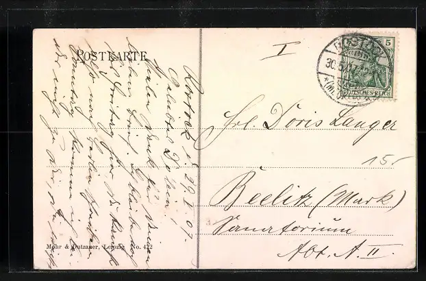 alte Ansichtskarte, gelaufen 1907, Albumspuren, guter Zustand