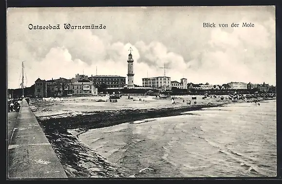 AK Warnemünde, Blick von der Mole zum Leuchtturm