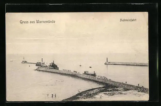 AK Warnemünde, Hafeneinfahrt mit Badegästen
