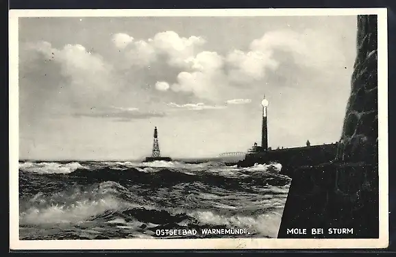 AK Warnemünde, Mole bei Sturm