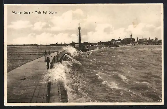 AK Warnemünde, Mole bei Sturm