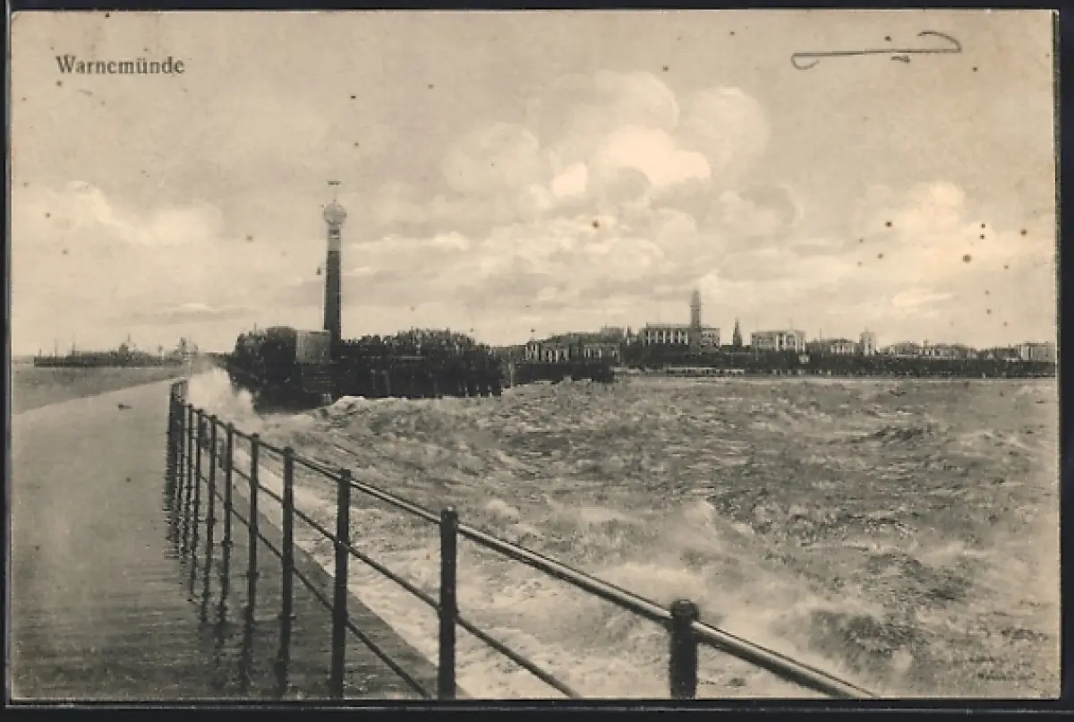 AK Warnemünde, Molenkopf mit Leuchtturm