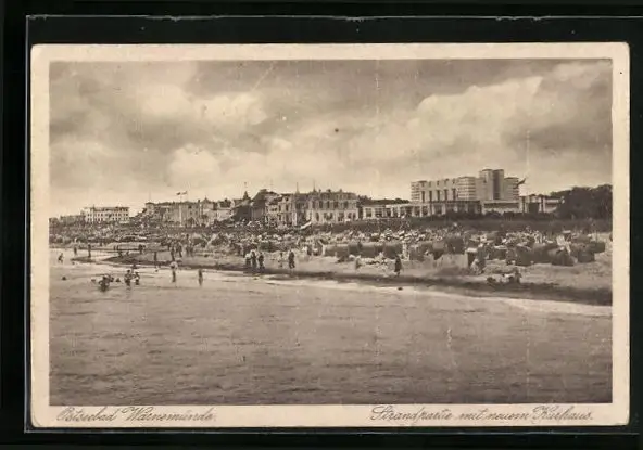AK Warnemünde, Strandpartie mit neuem Kurhaus
