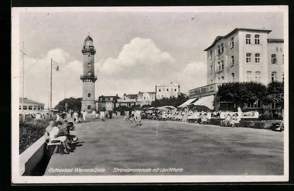 AK Warnemünde, Strandpromenade mit Leuchtturm