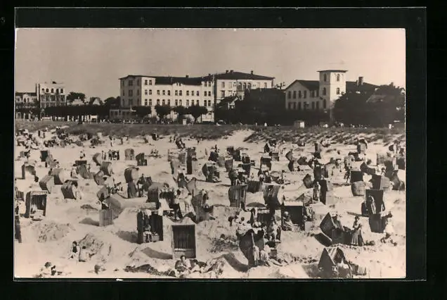 AK Warnemünde, Urlauber am Strand, Strandkörbe