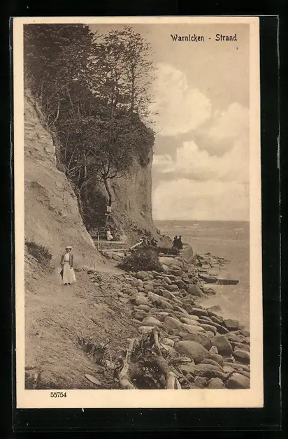 AK Warnicken, Strandansicht mit Spaziergängern