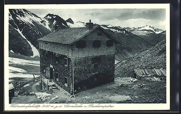 AK Warnsdorferhütte, Ansicht gegen Bienlücke und Reichenspitze
