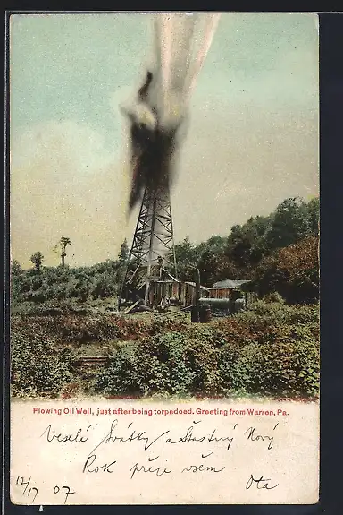 AK Warren, PA, Flowing Oil Well just after being torpedoed