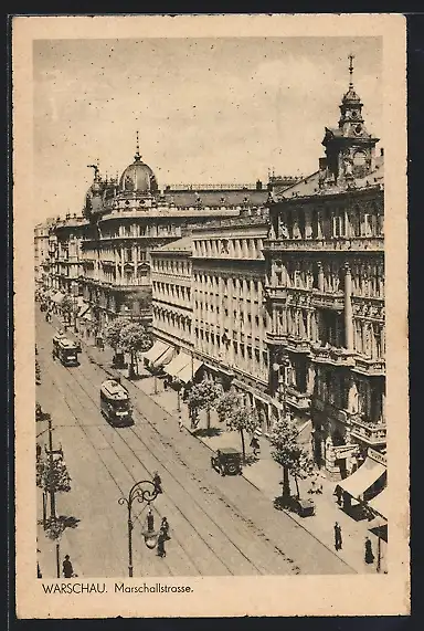 AK Warschau, Strassenbahnen in der Marschallstrasse