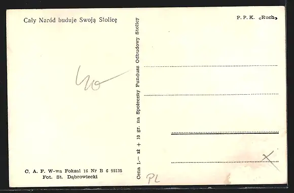 AK Warszawa, Caly Naród buduje Swoja Stolice