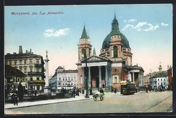 AK Warszawa, plac S-go Aleksandra, Strassenbahn