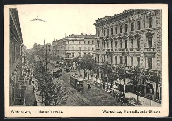 AK Warszawa, ul. Marzalkowska, Strassenbahn