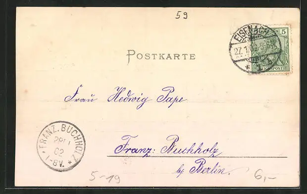gelaufen 1902, Albumspuren, sonst guter Zustand
