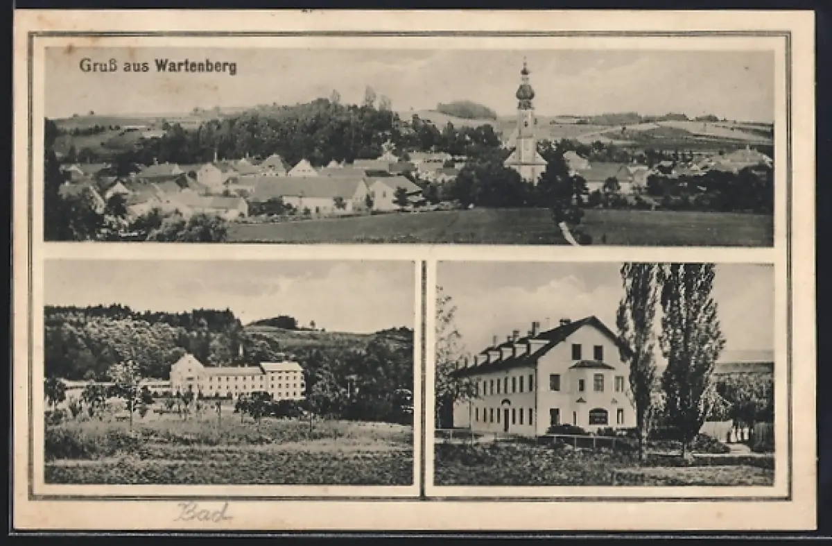 AK Wartenberg / Obb., Ortsansicht mit Kirche, Unterkunftsgebäude