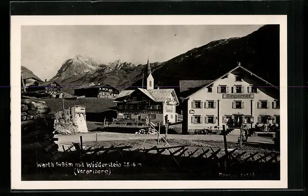AK Warth /Vorarlberg, Ortspartie mit Gasthaus Tirolerhof und Widderstein