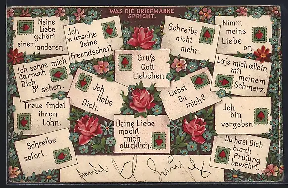 AK Was die Briefmarke spricht, Ich liebe dich
