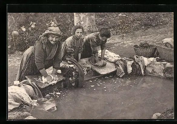 AK Waschfrauen beim Wäschewaschen