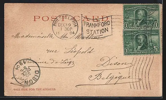 gelaufen 1904, Stempelspur, Eckknick li. oben, Abriebspur re., guter Zustand