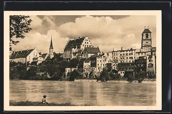 AK Wasserburg / Inn, Ortspanorama vom Inn