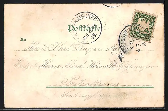 alte Ansichtskarte, gelaufen 1899, guter Zustand