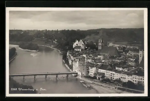 AK Wasserburg am Inn, Generalansicht mit der Innbrücke