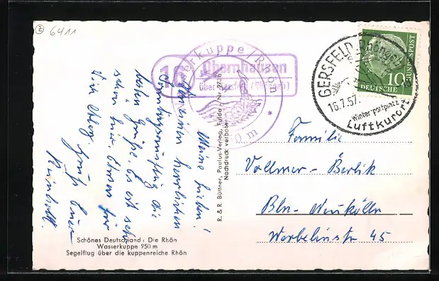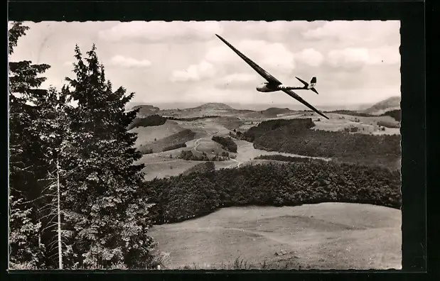 AK Wasserkuppe, Segelflugzeug über der Rhön