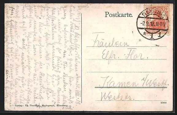 alte Ansichtskarte, gelaufen 1918, Eckknicke li. oben u. re. unten, guter Zustand