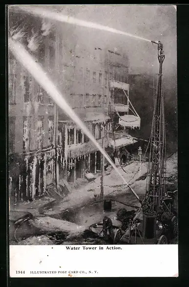 AK Water Tower in Action, Feuerwehr bei Löscharbeiten