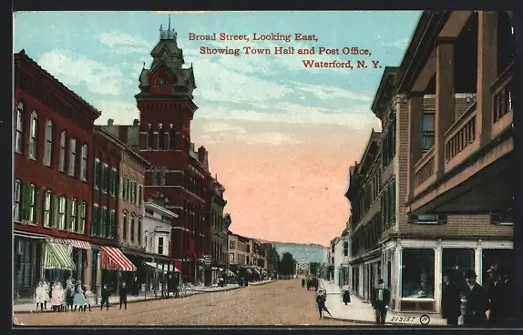 AK Waterford, NY, Broad Street with Town Hall and Post Office