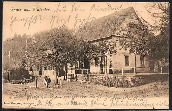 AK Waterloo, Gasthaus mit kleiner Versammlung