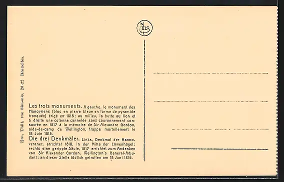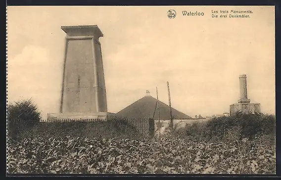 AK Waterloo, die drei Denkmäler