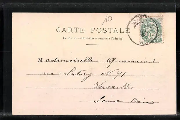 Personenbezogene Daten auf der Rückseite der Karte wurden durch blauen Textmarker unkenntlich gemacht. Die blauen Stellen sind auf die Vorderseite durchgeweicht und wirken sich negativ auf das Postkartenfoto aus