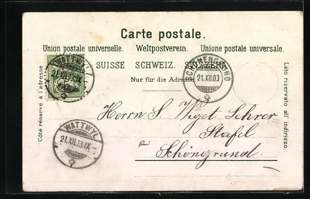 alte Ansichtskarte, gelaufen 1903, Abriebspur unten re., guter Zustand