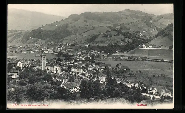 AK Wattwil, Generalansicht mit der Kirche