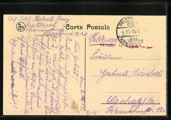 alte Ansichtskarte, gelaufen 1915 als Feldpost, guter Zustand