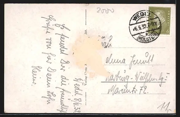 alte Ansichtskarte, gelaufen 1932, rückseitig Oberflächenschaden, guter Zustand
