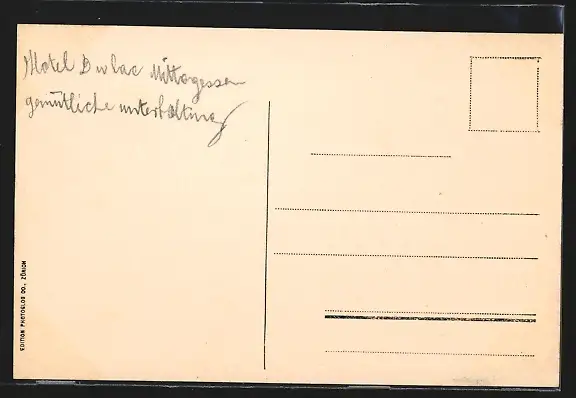 Personenbezogene Daten auf der Rückseite der Karte wurden durch blauen Textmarker unkenntlich gemacht. Die blauen Stellen sind auf die Vorderseite durchgeweicht und wirken sich negativ auf das Postkartenfoto aus